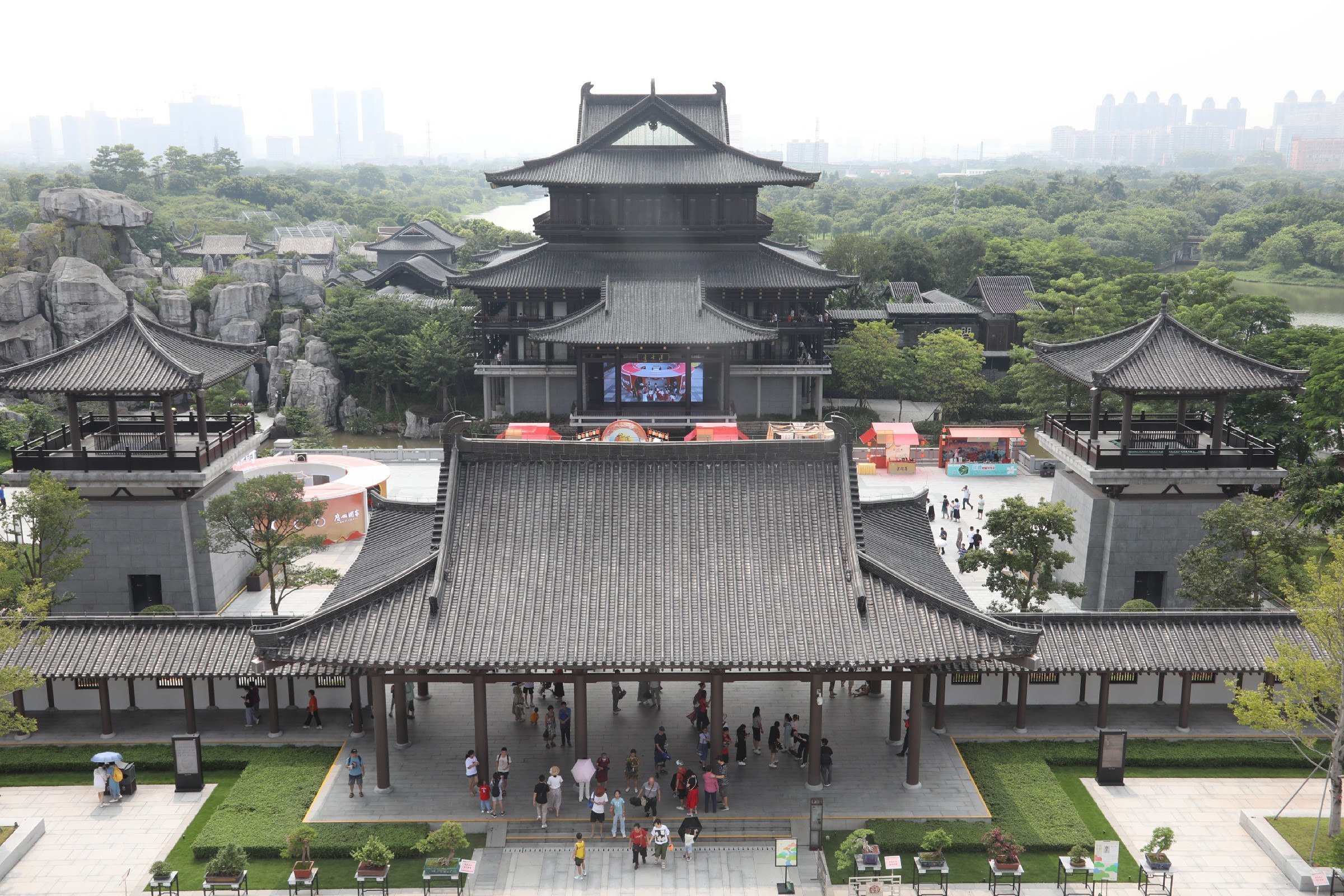 现在宇宙最大的文化馆,以“十里红云一湾水,八桥画舫十六亭”为假想主题,用传统建筑和园林空间的神秘组合再现岭南水乡园林的佳境,包含众人文化中心、文字园、曲艺园、广府园、广绣园等多组主题园林建筑,以及由它们共同酿成的大型园林景不雅,是富裕岭南生态特点、文化底蕴的城市客厅。